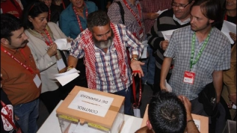 Crítica al pasado // En la madrugada del domingo, el PCE consiguió sacar por la mínima su balance crítico contra la gestión de Gaspar Llamazares. Hubo 288 votos del PCE contra los 288 de gasparistas y Nacional II. El empate favoreció al texto original, del PCE.