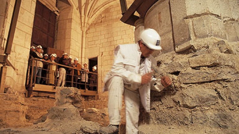 Algunos templos le han dado la vuelta a la tortilla y han convertido los feos andamios en una experiencia turística única y diferente.Es fácil sorprenderse cuando se contemplan a un palmo las figurillas de demonios y monstruos esculpidas en los muros del templo, o admirar las policromías del pórtico, que poco a poco, parecen recuperar el esplendor perdido. Y cómo no, observar de cerca los pilares retorcidos o resquebrajados por el exceso peso de unos techos de piedra que no estaban previstos en sus orígenes o, sobre todo, penetrar en su misteriosa cripta.