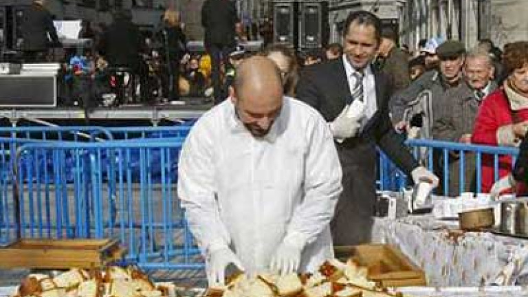 Roscón solidarioUn día de Reyes no sería los mismo sin el más que conocido roscón. La ONG Aldeas Infantiles lo sabe bien y esta mañana en la madrileña Puerta de Sol ha repartido más de 4.000 raciones del famoso roscón.