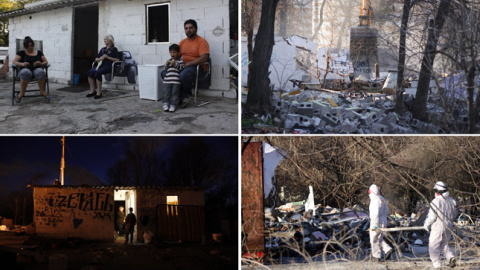 Sobre la última casa en pie del poblado de Puerta de Hierro, en Madrid, conocida como el culto porque allí se reunía todo el poblado para celebrar sus misas, Justo, el pastor evangelista de la comunidad, va tirando y cortando las planchas de metal del tejado. "¿Qué voy a hacer? ¿Dejarlo aquí para que lo tiren a la basura? Recogemos ahora la chatarra que podemos porque mañana, cuando lleguen las máquinas y la policía no nos dejará". (Ver fotogarelía )