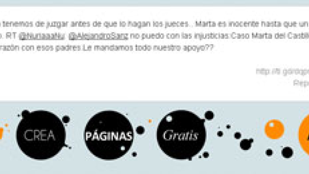 Una de sus seguidoras, @NuriaaaNu, le dijo: "No puedo con las injusticias: Caso Marta del Castillo!! Se me parte el corazón con esos padres. Le mandamos todo nuestro apoyo??". En su respuesta, Sanz, claramente confundido, escribió: "Qué manía tenemos de juzgar antes de que lo hagan los jueces.. Marta es inocente hasta que un juez diga lo contrario".