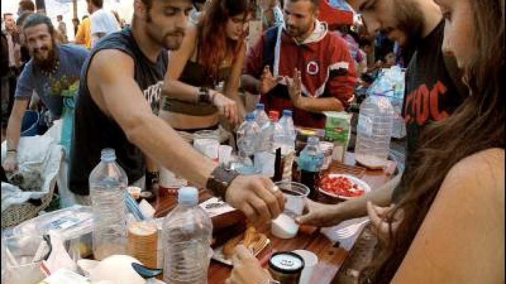 Teorías conspirativas al margen, en Sol han dejado claro que no alimentarán al troll, pero tampoco darán de comer al gorrón hambriento ni al jaranero de reenganche. "No somos un comedor social”, dijo ayer un encargado de la cocina de la acampada, en referencia a aquellos que alojan su indignación en el estómago. Porque ha habido quejas por el acopio de comida por parte de ciudadanos que no han venido hasta aquí para protestar sino para contentar el bandullo, por lo que el citado responsable de los fogones advirtió de que sólo proporcionarán alimentos a los acampados que se comporten y a los indignados afines al movimiento 15-M.