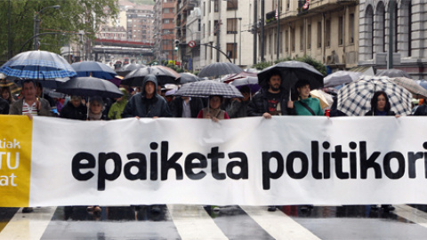 La manifestación, convocada por el movimiento de la izquierda abertzale Eleak, ha contado con la participación de representantes de la antigua Batasuna y de los partidos que completan la coalición Amaiur, como Eusko Alkartasuna (EA), Aralar y Alternatiba. Varios de los acusados en el juicio, como Amparo Las Heras y Arantza Urkaregi, han portado la pancarta que ha abierto la marcha, en la que se leía "Epaiketa politikorik ez" (No a los juicios políticos). Bajo la lluvia durante buena parte del trayecto, los manifestantes han coreado consignas habituales a favor de los "presos vascos", de la "amnistía" y de la "independencia".