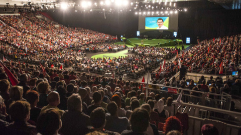 "Sonreíd porque vamos a luchar. Sonreíd porque vamos a ganar"Tras varias actuaciones musicales, bertsolaris, danzas vascas y la actuación de un grupo de castellers, el acto se abrió con la palabra del escritor Antonio Álvarez Solís. Después, llegó la "sorpresa" que habían anunciado los organizadores.