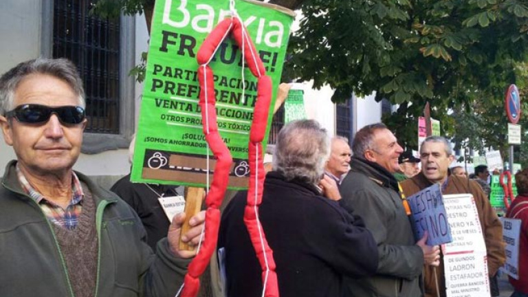El grupo de preferentistas, que ha acudido con bocinas y carteles, también le ha gritado "sinvergüenza, chorizo, ladrón" y "ahí está el amigo de Aznar". Además, han llevado chorizos de pega colgados al cuello y carteles en los que podía leerse "Blesa, preferentes serán tu tumba"