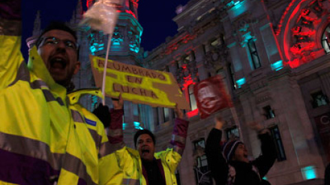 Entre pitidos y petardos, un centenar de empleados ha pedido la dimisión de la alcaldesa, Ana Botella, y le han lanzado un aviso: si las nuevas empresas adjudicatarias no cuentan con la actual plantilla "las uvas te las comes a oscuras".