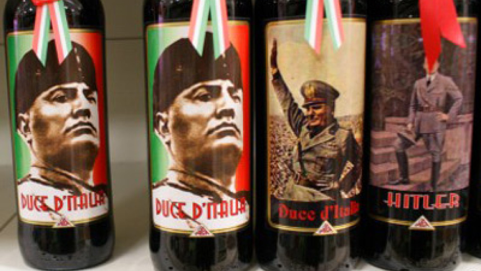 Una turista francesa de paso por el norte de Italia se llevó una desagradable sorpresa cuando se topó en las estanterías de un supermercado GS de Cuveglio (Varese) varias botellas de vino ilustradas con las figuras de Mussolini y Hitler. La mujer, de origen judío, se sintió ofendida, envió fotos de los caldos a una web francesa y se montó el escándalo.