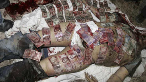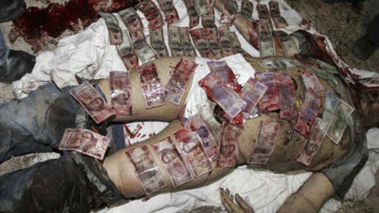 El narcotraficante Marcos Arturo Beltrán Leyva, quien quiso ser El jefe de jefes de la mafia mexicana, murió en medio de una lluvia de tiros durante un sangriento enfrentamiento entre sicarios e infantes de marina. Su cuerpo apareció cubierto de billetes y un rosario, como muestra la foto de la izquierda, difundida por la prensa mexicana.
