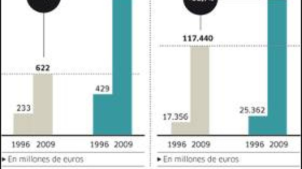El beneficio, quizá el epígrafe que mejor resume el conjunto de una estrategia, creció 3,6 veces en Caja Madrid desde 1996 a 2008, mientras que el de La Caixa aumentó 4,3 veces. Esta diferencia se explica, aseguran los expertos, por el diferente modelo de negocio aplicado por una y otra.