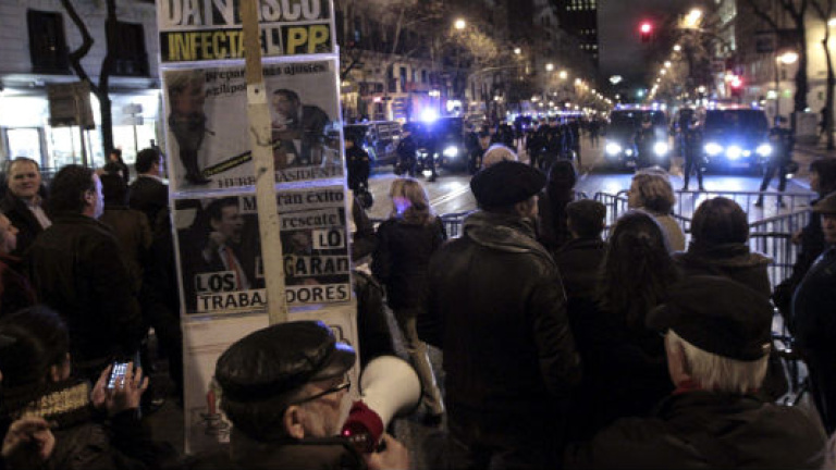 El Gobierno sitió policialmente Madrid para evitar la protesta ante la sede del PP, asediado por los supuestos escándalos de corrupción. La movilización, convocada a través de las redes sociales, no fue masiva. No se