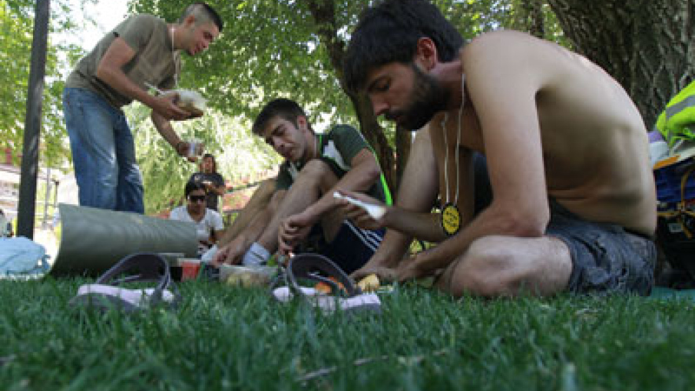 Ayer eran más de 120 personas las que llegaron a Getafe (Madrid) dentro de la denominada Ruta Este. Y no ha sido fácil. "Al principio nadie sabía muy bien cómo hacer esto posible. Hubo que organizarlo todo: pensar cuánto peso podíamos llevar, la ruta, buscar un coche de apoyo...", recuerda José Antonio Fernández Cabello, JFK, como confiesa entre risas. "Yo iba en la avanzadilla, hablando con los alcaldes y la Policía. Conseguíamos que nos dejaran el polideportivo para descansar y asearnos porque somos indignados, no indigentes", explica Cabello.