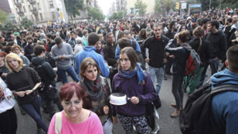 Lo cierto es que la manifestación de este miércoles, la más concurrida en los tres días de protesta, tuvo tintes pacíficos hasta que unos 30 encapuchados empezaron a lanzar objetos y quemar contáiners delante de la sede del distrito. Fue entonces cuando los Mossos pidieron la disolución de la marcha primero y cargaron contra los manifestantes después.