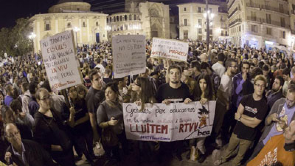 Canal Nou triplicó este miércoles su audiencia tras la rebelión de los trabajadores, que no siguieron la programación y realizaron un programa especial contra el cierre de RTVV. La media de la cadena alcanzó un 9,4% de cuota de pantalla, el triple de la media del último mes, y los informativos del mediodía y de la noche alcanzaron un 13,8% y un 13,6% respectivamente. El espacio informativo de mediodía lo siguieron 191.000 espectadores y 260.000 personas vieron Notícies 9 por la noche.