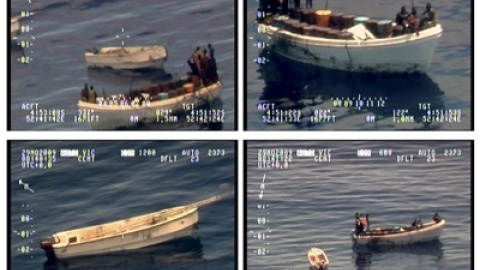 Según la OTAN, los navíos persiguieron al grupo de piratas, que usaban tres barcos, dos de ellos lanchas rápidas para el abordaje y otro el "barco-madre" que prestaba apoyo logístico y que contaba con gasolina, alimentos, armas, escaleras, cuerdas y otros materiales.