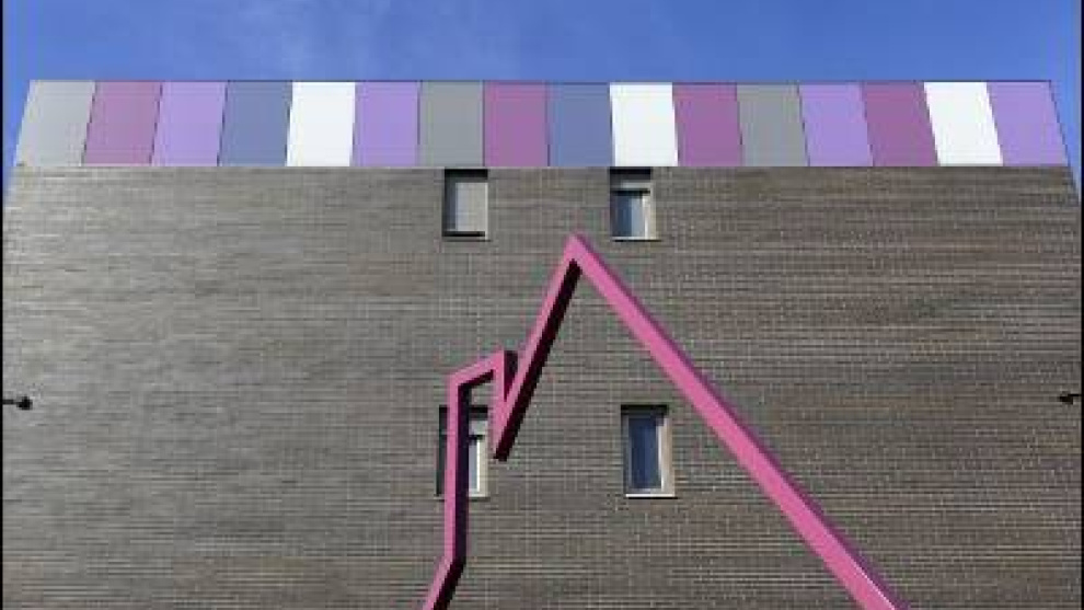 En su cuarto párrafo, la ley establece que la violencia de género "ya no es un delito invisible". La Casa Malva, desde luego, no lo es. Como su nombre indica, su fachada está pintada con llamativos colores. Imposible no ver este edificio, integrado en un barrio residencial.