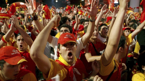 Casillas, tras recoger la Copa de manos de Platini, se subió a la valla del palco de honor y, rodeado del resto de integrantes de la selección española, la alzó al cielo de Viena, en medio del grito de ¡Campeones, Campeones!.