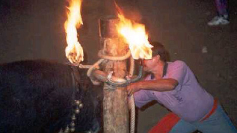 Un calor abrasante sobre la cabeza y los ojos. Es lo que sienten los toros cuando se les incrustan dos bolas de fuego en los cuernos y se les hace correr para divertimento de la población. Es el denominado bou embolat (toro embolado), muy popular en las fiestas de la Comunitat Valenciana, sobre todo en la provincia de Castellón.