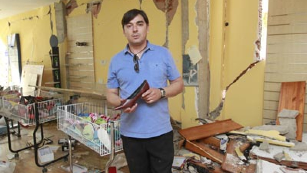 A su lado hay aún en pie una clínica de Asepeyo y una oficina de loterías. Su dueño, José, recoge cajas repletas de décimos y boletos que ya no venderá. "No se puede entrar, me han dicho que si lo hacía era bajo mi responsabilidad", comenta cargando el coche. Le ayuda con las cajas José Mula, el responsable de la tienda Glamour Muebles y Decoración. Bromean con su suerte. El negocio de Mula está en el edificio contiguo y parece que se ha salvado. Pero Mula dice no con la cabeza e invita a entrar en su negocio. Parece el fin del mundo, al menos para todos esos muebles destrozados. "Teníamos unos 500.000 euros y todo se ha perdido", dice.