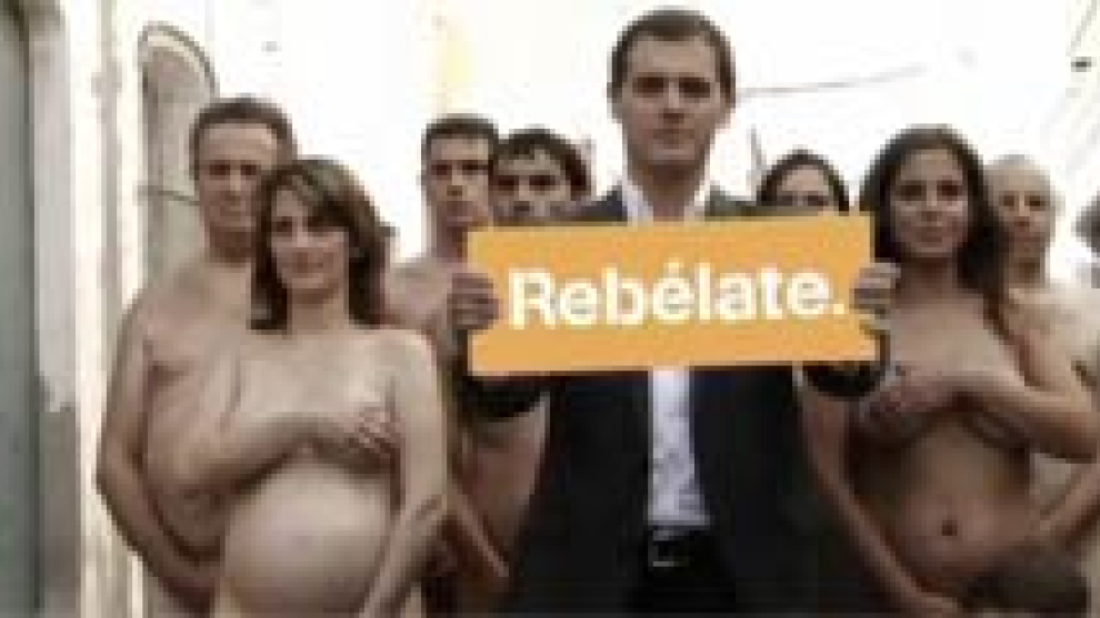 Si hace cuatro años Ciutadans (C's) presentó a su candidato a la presidencia de la Generalitat, Albert Rivera, desnudo en su cartel electoral, esta vez el partido recurre a un desnudo colectivo en su 'spot' de campaña para llamar a los electores a "rebelarse" contra la Catalunya actual.