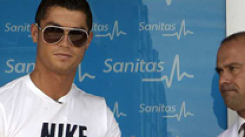 Cristiano Ronaldo, que llegó sobre las 12,52 hora local (10.52 GMT) a la capital de España, en vuelo privado procedente de Lisboa, acudió a la clínica Sanitas de La Moraleja, en cuyas puertas fue recibido por el jefe de los servicios médicos del club, el doctor Carlos Díez.