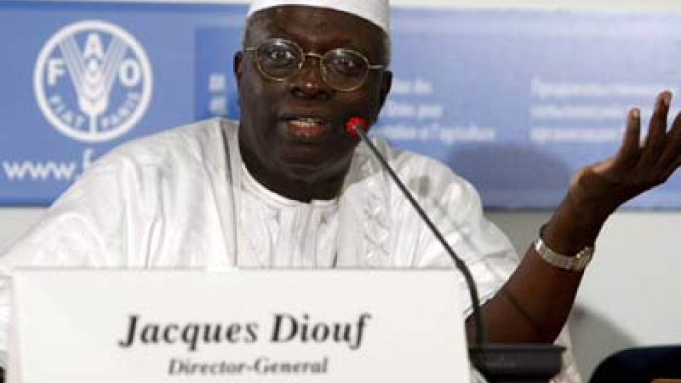 Diouf, que había acompañado con una huelga de hambre su petición a los miembros de la FAO de aportar 44.000 millones a los campesinos pobres del planeta, alzó ayer los brazos al cielo y exclamó: "A mi pesar, debo constatar que esta declaración no contiene ni objetivos cuantificables, ni plazos precisos para supervisar mejor su realización".