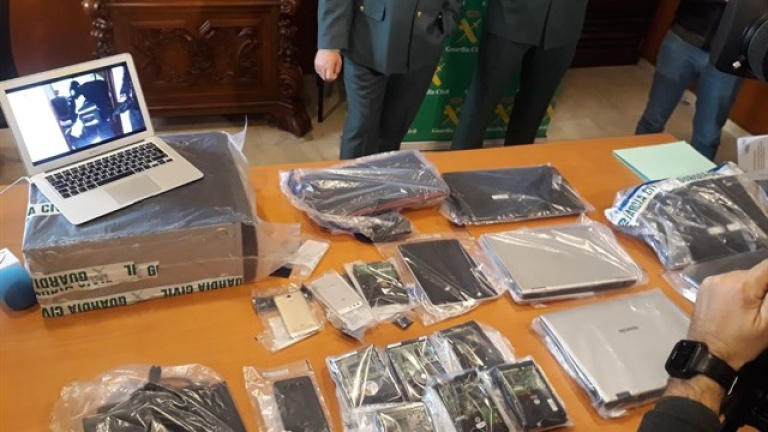 El material incautado en la operación en la que se ha detenido a 19 personas de una red que distribuía pornografía infantil a través de la aplicación WhatsApp. /EFE
