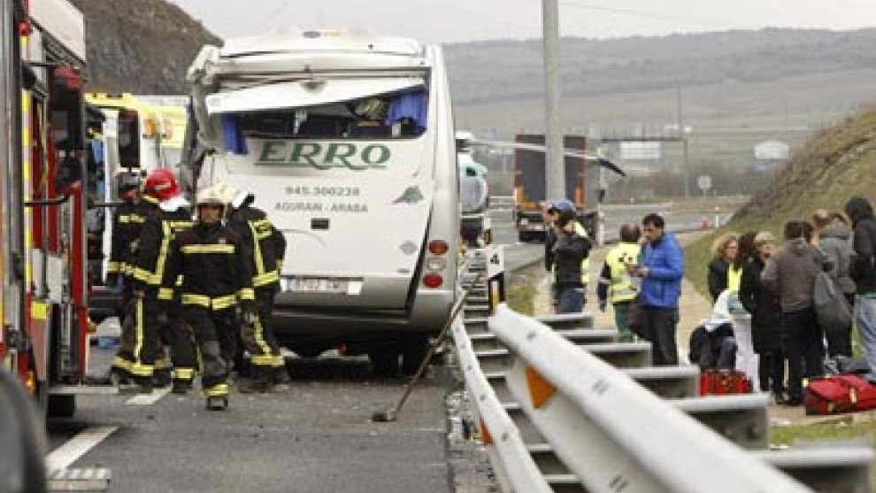 Un total de 18 personas han resultado heridas, 7 de ellas de gravedad, al colisionar el microbús en el que viajaban con un camión articulado en la AP-1, a la altura del municipio alavés de Arrazua-Ubarrundia.