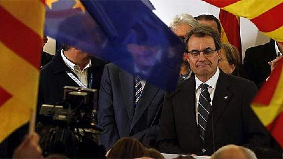 23.28 - Una pancarta dice: "Te hemos prestado el voto, ahora no te despistes". Mas la lee en voz alta. "Sé que no estoy solo. Iremos ampliando las mayorías en este país, pero ahora es más difícil", remarca Mas.