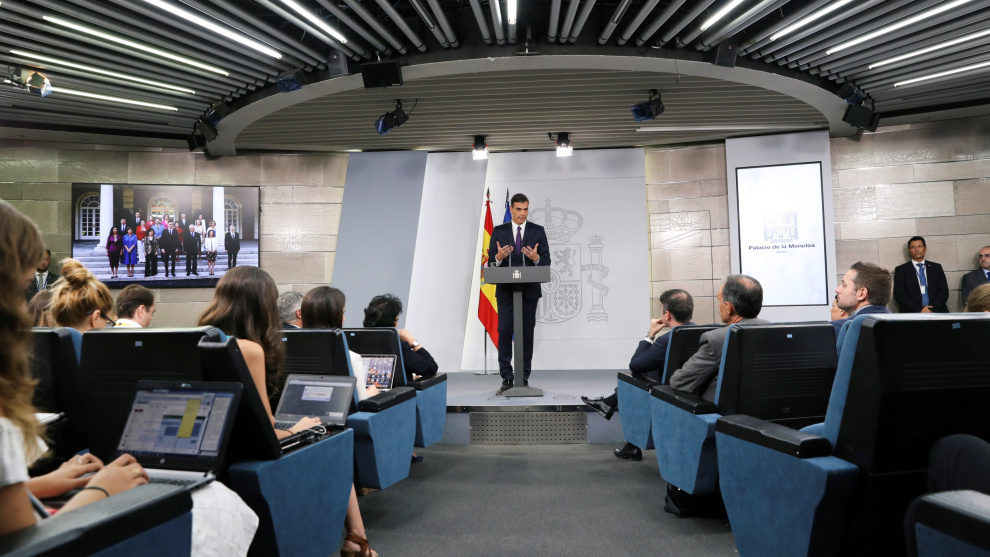 Siguiendo la tradición desde la etapa de José Luis Rodríguez Zapatero que el presidente del Gobierno intervenga tras el último Consejo de Ministros antes del verano, Pedro Sánchez ha presumido de la actividad del Ejecutivo en sus dos meses de vida en asuntos como Catalunya, la inmigración o la violencia de género, y ha insistido en que su intención es terminar la legislatura. Y ha manifestado su apoyo tanto al rey Felipe VI ("ejemplar") como al director del CNI en el asunto de Corinna.