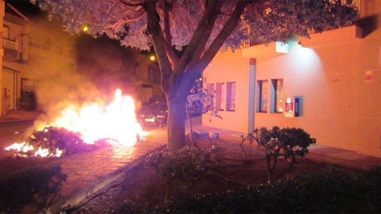 Los bomberos se ven obligados a actuar para apagar fuegos en contenedores y mobiliario en diferentes puntos de la localidad. Los altercados se producen tras el apuñalamiento de un varón originario de Guinea Bissau durante una discusión de tráfico.