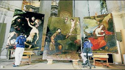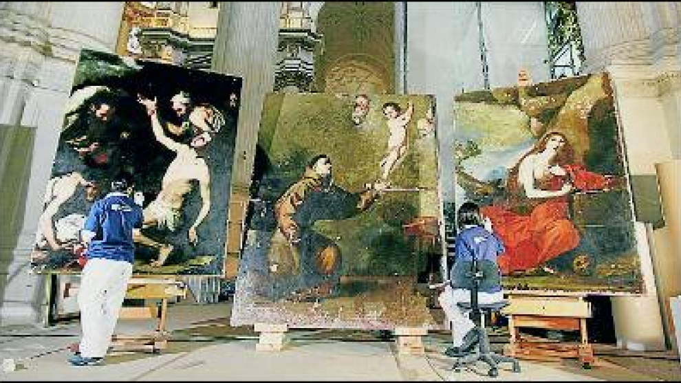 "Los historiadores atribuían los cuadros a Ribera, pero pensando que se trataba de copias de taller", explicó Pablo Jiménez, experto en Historia del Arte. El director del proyecto, Antonio Sánchez-Barriga, aseguró que las obras Apa-rición del Niño Jesús a San Antonio de Padua, Martirio de San Lorenzo y María Magdalena Penitente tienen una "calidad excepcional, firma auténtica, trazas excelentes y tela napolitana", y que fueron restauradas sobre el año 1721. "A pesar de estar en alto y en pésimas condicionescon bolsas y repintes, y adheridas a un tablero con cola orgánica, teníamos la certeza de estar ante cuadros de gran calidad y valía", añadió.