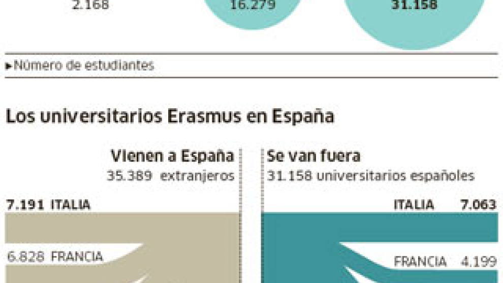 El curso pasado, 31.158 universitarios españoles se beneficiaron de los 254 euros mensuales que, según la UE, recibieron de media los becados. Además, en el presente curso 2010-2011, a punto de finalizar, se estima que el número de estudiantes de facultades españolas que se encuentran estudiando en algún país de Europa aumentó hasta 35.318, según las previsiones iniciales del Organismo Autónomo de Programas Educativos Europeos (OAPEE).