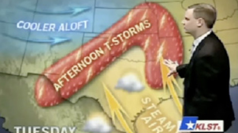 En esas se vio el presentador de un canal de televisión de Texas (EEUU) que, dando muestras de una gran profesionalidad, se limitó a narrar el tiempo para las próximas horas mientras abarcaba con la mano la zona exacta donde se desataría el temporal.