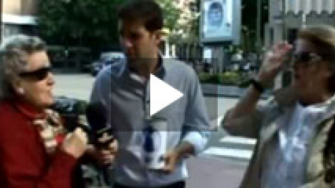 "Intereconomía, ¿cuál es?", pregunta la primera señora cuando de repente surge otra mujer vestida de rojo que responde "la mejor que hay". "Yo veo Intereconomía y Veo7", añade la segunda mujer, quien rechaza dejar el donativo porque salía "a caminar".