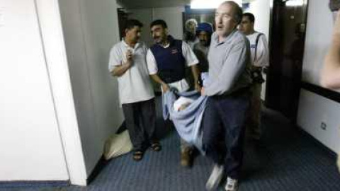 La Fiscalía General del Estado argumenta que el ataque contra el hotel Palestina no es un delito perseguible. Hasta ahora ha intentado archivar el proceso, en especial desde que el juez de la Audiencia Nacional Santiago Pedraz ordenara la busca y captura internacional de los militares estadounidenses responsables.
