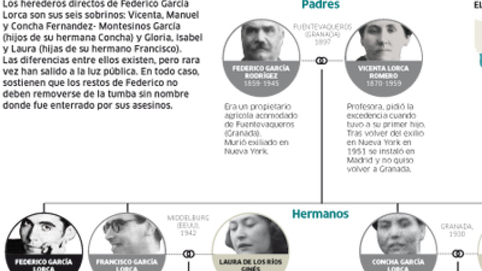 Casi nadie tiene claro a qué juega la familia Lorca. Los seis firmantes de las alegaciones contra la apertura de la fosa, con Laura García-Lorca al frente, mantienen una visión patrimonialista de los restos del poeta que irrita a las asociaciones de memoria histórica y alimenta teorías extrañas y rumores que, siendo quizás verosímiles, carecen de base real, como el nunca confirmado de que se trasladó el cuerpo tras su asesinato. La familia Lorca no es una familia cualquiera. Tiene carácter. En la propia Junta de Andalucía se andan con mucho cuidado al hablar de asuntos relacionados con ellos. Desde la CGT, Cecilio Gordillo incluso se quejó de que, para abrir la fosa de Alfacar a demanda de la familia de Francisco Galadí, se creara un procedimiento ad hoc para las alegaciones de la familia Lorca, con el objeto de tenerlos contentos y no darles motivo de queja. Luego les ampliaron el plazo. Más tarde, cuando parecía que se habían salido del plazo, la Junta aclaró que tenían un día más. Pero eso no quitó para que las alegaciones de la familia estuvieran trufadas de confusos y velados reproches a la Junta.
