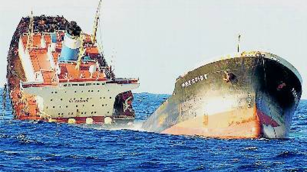 En noviembre de 2002, el petrolero Prestige, un monocasco cargado con 77.033 toneladas de fueloil, con bandera de Bahamas, se partió en dos después de zozobrar frente a las costas gallegas debido a la rotura de uno de los tanques en un momento de tormenta.