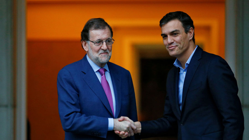 El presidente del Gobierno, Mariano Rajoy, y el líder del PSOE, Pedro Sánchez, se han reunido durante dos horas y media en La Moncloa en su entrevista más larga y en la que ambos han explorado, con el desafío soberanista catalán en el centro de atención, opciones de acuerdo, al menos, en asuntos de Estado.