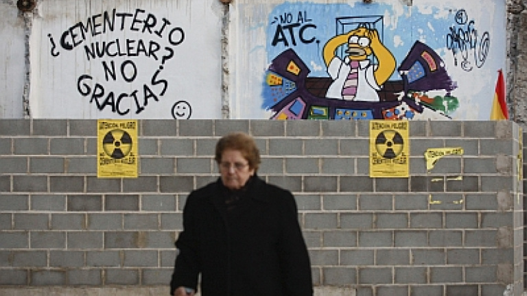 Son las seis de la tarde y las campanas repican en Yebra (Guadalajara). El sacerdote del pueblo, el padre Antonio, camina apresurado por la Plaza Mayor, flanqueado por una pancarta que reza "Sí al ATC" y por un mural en el que Homer Simpson grita: "¿Cementerio nuclear? No, gracias". En el interior de la Iglesia de San Andrés, bajo una bóveda de crucería gótica, el cura susurra: "Yo ni estoy a favor ni en contra del almacén nuclear, mi misión es unir al pueblo, no dividirlo".