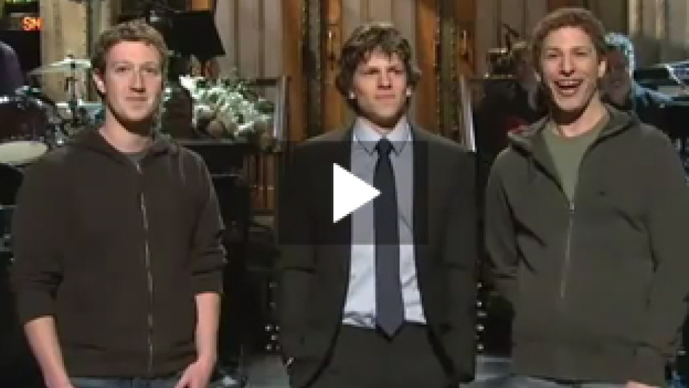 El fundador de Facebook, Mark Zuckerberg, ha conocido a Jesse Eisenberg, el actor de la película La red Social nominado a un Oscar , en el programa Saturday Night Live.
