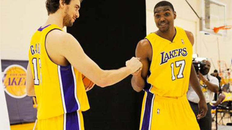 Bynum y BryantPero si Artest tuvo un gran debut, la sorpresa positiva para los Lakers fue ver al pívot Andrew Bynum en su mejor versión atacante para ser el líder encestador con 24 puntos (8-13 y 8-9), capturó cinco rebotes y dio una asistencia.