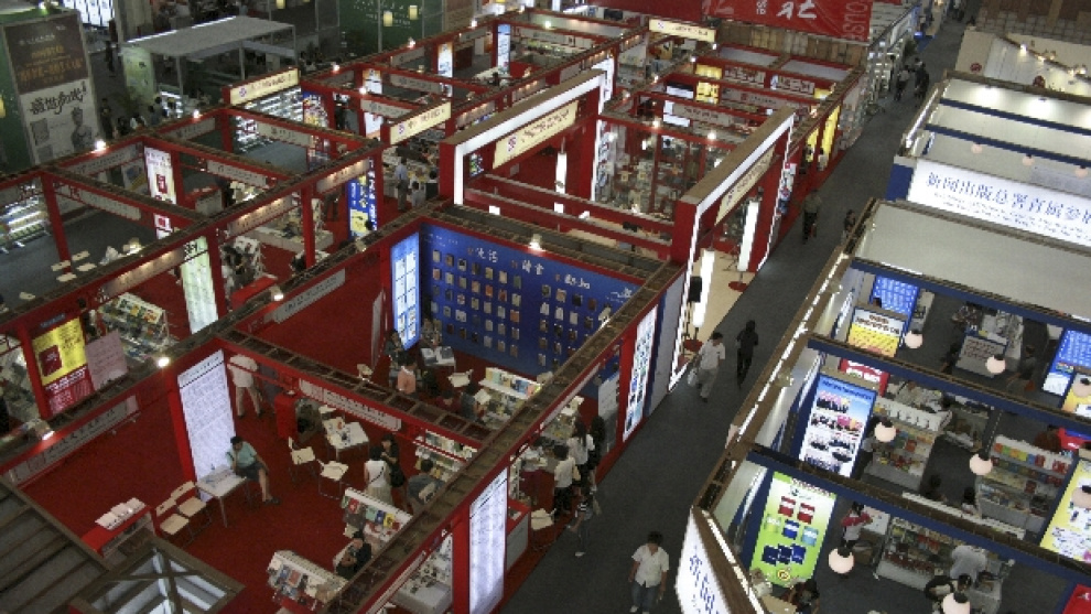 El pabellón de España expone mil títulos en numerosos expositores que, como todos en la feria, no están a la venta y se donarán a la biblioteca del Instituto Cervantes de Pekín.