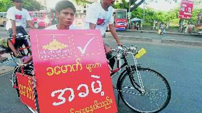 Opacidad y votos forzadosCon el recuerdo de la derrota de hace veinte años, la Junta ha tomado precauciones para asegurarse la victoria y ha suspendido las votaciones en algunos estados, ha reforzado la presencia del ejército en zonas tribales y la oposición asegura que ha comenzado a extorsionar a los birmanos para que vayan a votar. "Mucha gente no quiere ir a votar, pero la Junta los ha amenazado y los fuerza a ir. En realidad, la Junta ya tiene los votos antes de las elecciones", asegura Ko Thet Oo, un refugiado político que se pasó 15 años en la famosa prisión de Insein, en la antigua capital de Yangón.