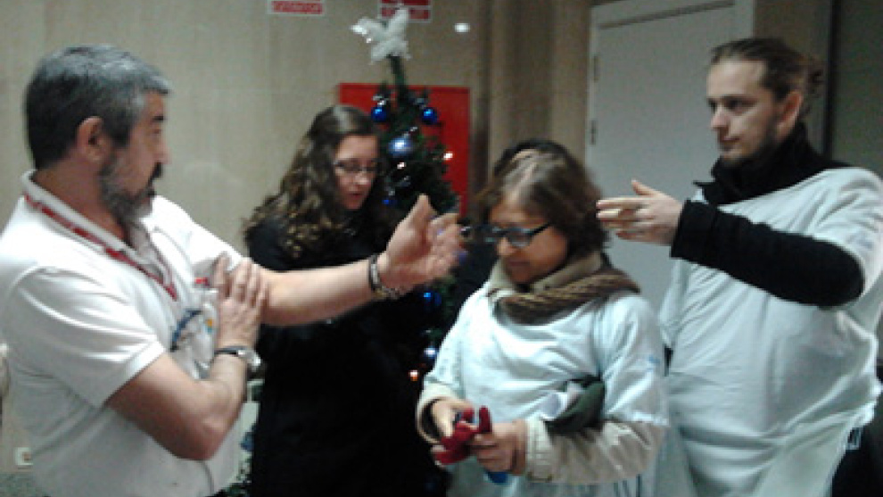 Alrededor de treinta personas, ataviadas muchas de ellas con batas blancas de hospital, han entrado por la puerta trasera y han ocupado el hall a grito de "nada, nada, nada para la privada" y "donamos sangre, ellos nos la chupan". Trabajadores de la compañía han tratado e impedir el paso pero algunos de ellos han conseguido subir por las escaleras y otros por ascensor. Finalmente, todos han vuelto a bajar al hall junto a sus compañeros, salvo unos portavoces que han conseguido reunirse unos momentos con uno de los directivos.