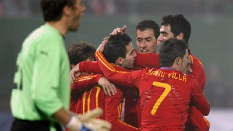 Con más ganas de fiesta que de ensañarse con un rival absolutamente menor, España se homenajeó con una goleada en su regreso a Viena. Lo hizo gustándose bajo dos disfraces, los dos modelos con los que de repente cuenta Del Bosque. El viejo traje del toque y el juego por el centro, con la superpoblación de centrocampistas, y el nuevo descubrimiento, al calor de la deliciosa aparición de Jesús Navas y Pablo, con dos bandas, dos puntas y más profundidad. Ambas fórmulas se encontraron sin rival enfrente (Austria encima tuvo que sobrellevar su inferioridad con un jugador menos durante más de una hora).