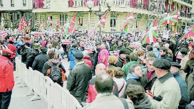 La mañana era gélida, pero el ambiente en el Tribunal Superior de Justicia del País Vasco estaba caldeado desde primera hora. Era lógico. Era el día señalado bajo nubarrones para acoger un juicio histórico con un lehendakari, Juan José Ibarretxe, y un candidato a serlo, el socialista Patxi López, en el banquillo de los acusados, junto a los dirigentes de la izquierda abertzale que participaron en el último proceso de paz. Los acusados entraron entre aplausos del público reunido ante la sede del TSJPV y los acusadores, entre silbidos.