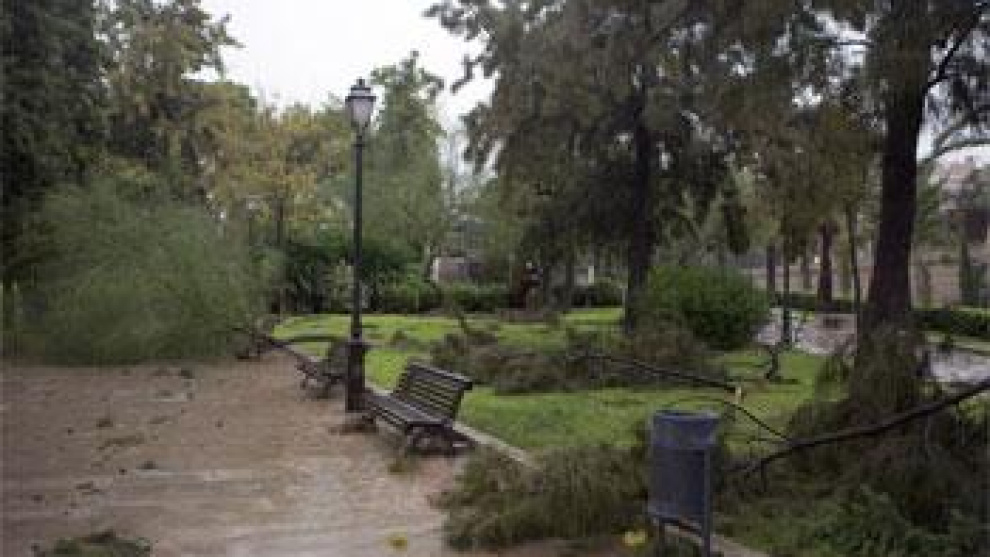 Son los efectos de la fuerte tormenta, con intensas trombas de agua y vientos de hasta 109 kilómetros por hora, que ayer por la tarde descargaron sobre Palma de Mallorca.