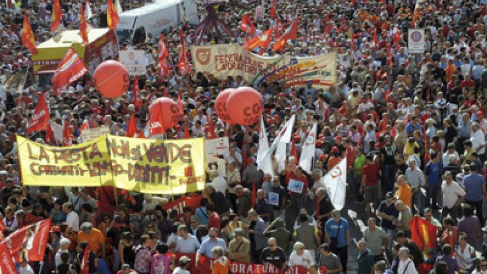 Miles de trabajadores se lanzaron ayer a las calles de todo el país secundando la huelga general de ocho horas convocada por la CGIL. Las manifestaciones se extendieron por más de un centenar de ciudades y la huelga tuvo un seguimiento, según la CGIL, del 58% de los trabajadores inscritos en sus filas, que pararon sobre todo los transportes. La jornada, apoyada por todos los partidos de izquierdas, se desarrolló sin grandes incidentes, aunque en Nápoles hubo enfrentamientos entre Policía y manifestantes.