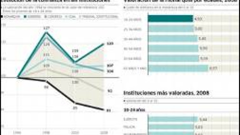Los jóvenes siempre han valorado a la monarquía un poco por debajo de la media general. Pero, a lo largo de la década de 1990, la corona era aún la institución más apreciada por los jóvenes, que en una escala de 0 al 10 le asignaban una puntuación cercana al 6, con leves oscilaciones hacia arriba o hacia