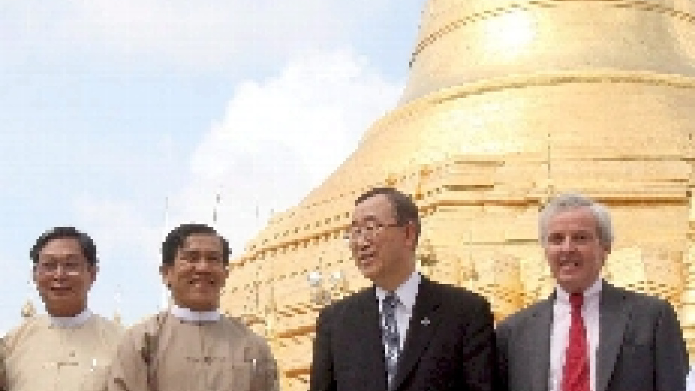La presencia de la aeronave en Rangún coincide con la visita que el secretario general de la ONU, Ban Ki-moon, inició hoy en esa misma ciudad con el propósito de convencer al Gobierno de que abra las puertas del país a la ayuda internacional, particularmente a los cooperantes extranjeros a los que entrega visados de entrada de uno en uno.